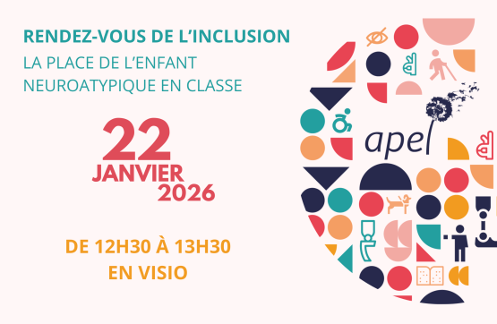 Un jeudi par mois, l'Apel nationale vous invite pour un webinaire sur une thématique d'éducation inclusive. En janvier 2026, notre cinquième rendez-vous sera sur l'enfant neuroatypique en classe.