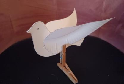 Colombe à l’aide d’une assiette en carton